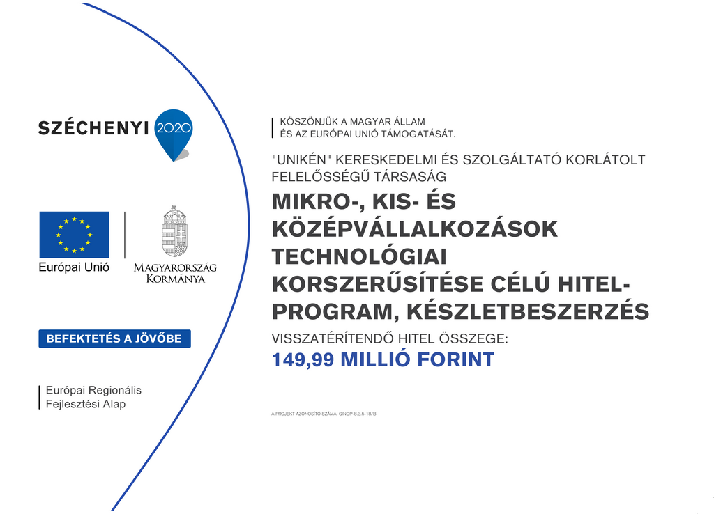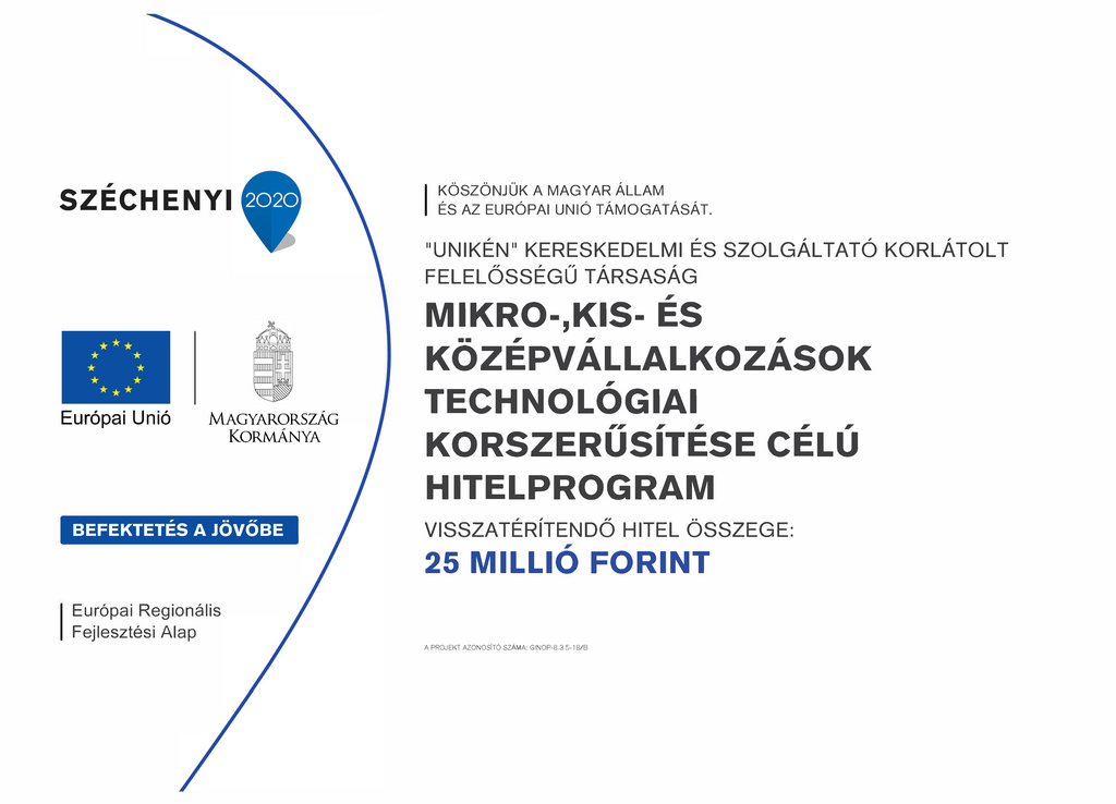 Az Unikén KFT. 10 965 920 ft vissza nem térítendő támogatást nyert a gazdaságfejlesztési és innovációs operatív program által, 2016. december 21-én kiadott „Vállalati komplex infokommunikációs és mobilfejlesztések, felhőalapú online üzleti szolgáltatások terjesztésének támogatása” című pályázaton.